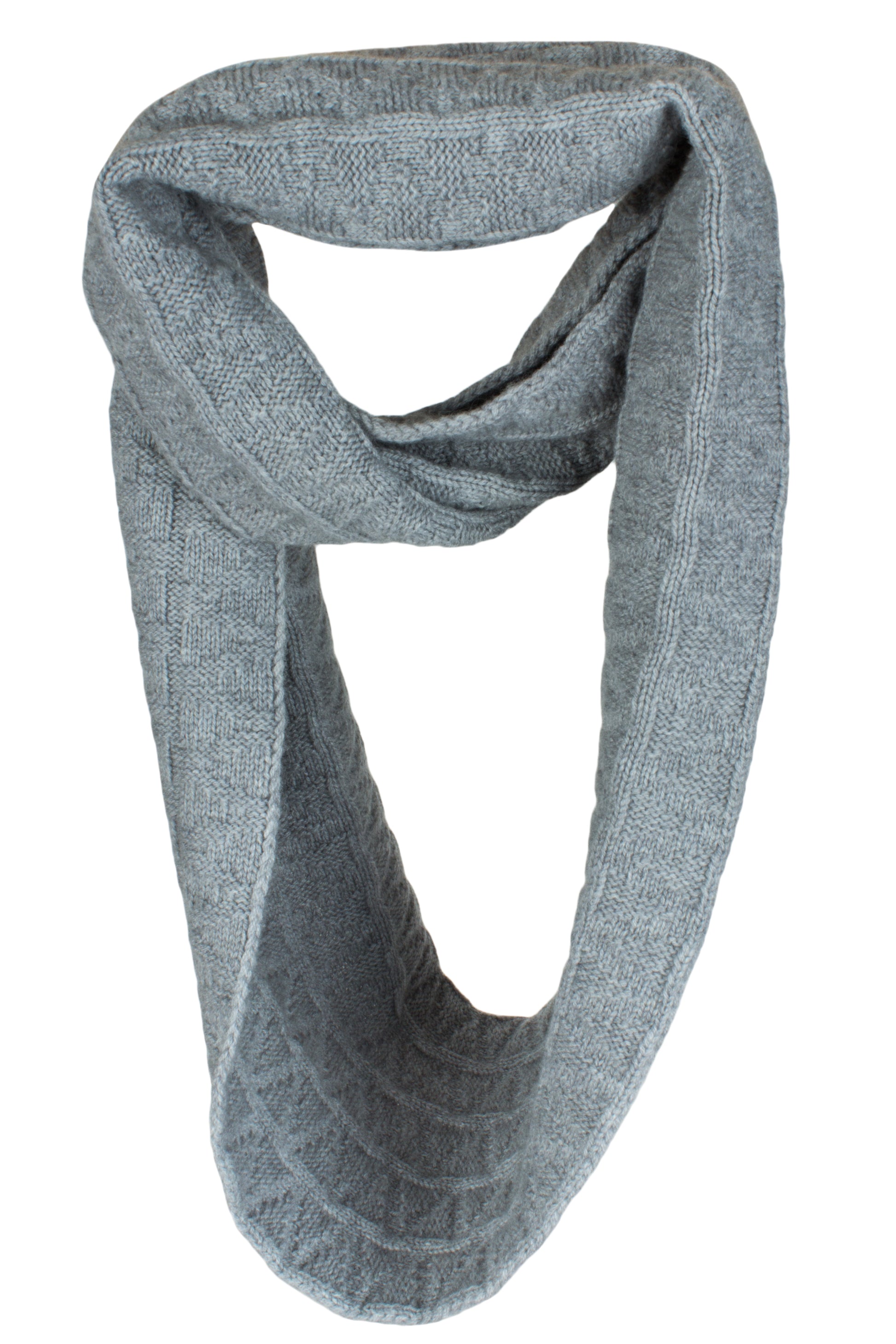 Our Zig-Zag Cashmere Infinity Scarf / Snood is made from the best 6 ply Italian Cashmere from Cariaggi, knitted in a plain/purl zig-zag pattern.